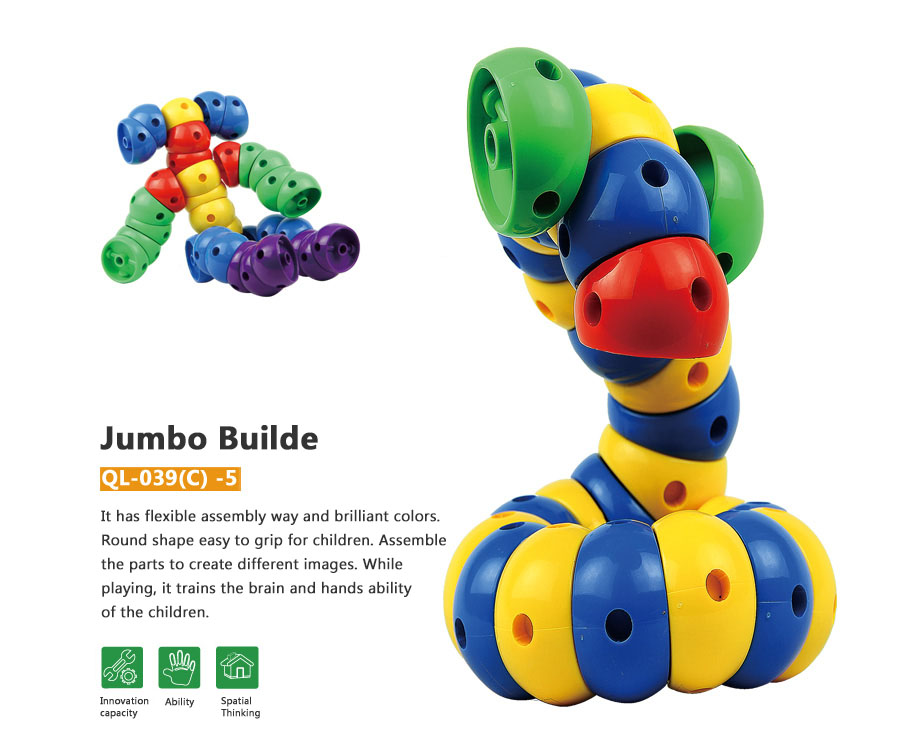 It has flexible assembly way and brilliant colors. Round shape easy to grip for children. Assemble the parts to create different images. While playing, it trains the brain and hands ability of the children.